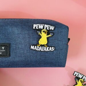 Add some humor and personality to your collection with the Custom Buy Pew Pew Madafakas Duck Pin Badge. This fun and bold enamel pin features a quirky yellow duck character with two guns, exclaiming the playful phrase “PEW PEW MADAFKAS!” The design combines playful elements with vibrant colors, making it a standout accessory for anyone looking to make a statement.