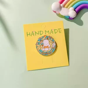 The Custom Buy Pochacco Pin Badge – Sanrio Series Pin Badge showcases Pochacco’s cheerful and fun-loving personality. This pin features Pochacco surrounded by colorful candies, playful animals, and charming details. The vibrant color palette, combined with gold-tone edges, adds a whimsical touch to the design. The detailed craftsmanship captures Pochacco’s sweet expression and adorable style, making this pin a must-have for any Sanrio fan.