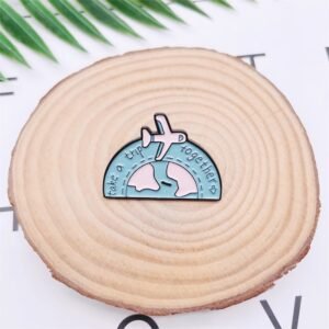 This Custom Buy Travel Together Pins Badge captures the joy of shared adventures. Featuring a soft pink airplane soaring above a pastel Earth and the phrase “take a trip together,” this badge symbolizes connection and discovery. Measuring 2.2 × 3.0 cm and weighing 5.9g, it’s compact yet meaningful—perfect for couples, best friends, or families planning their next journey. Moreover, the playful arc design and dotted flight path enhance its dreamy aesthetic.